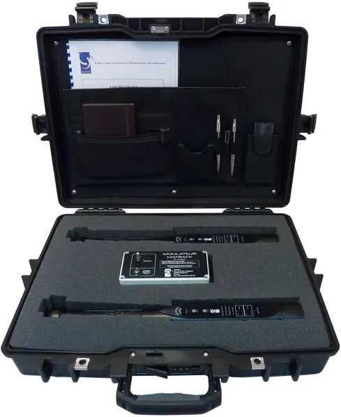 Le détecteur MATRACK® (Magnetic Anomaly TRACKer) est un outil simple d’usage, répondant à la norme OTAN AEODP 07 du STANAG 2897, permettant de contrôler le rayonnement magnétique des équipements utilisés en lutte et chasse aux mines, dont ceux des plongeurs démineurs. L’ensemble se compose d’une paire de détecteurs et d’un simulateur de test, le tout intégré dans une valise de transport.